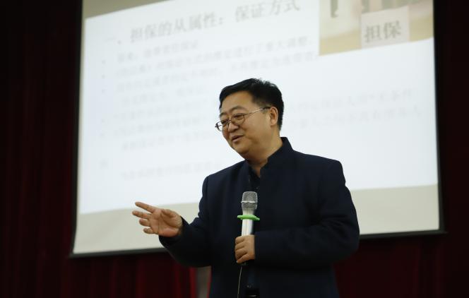 周驍男教授長期從事商法和經濟法的教研科研工作,擔任著長春市人民調解協會副會長、長春市檢察院人民監督員、長春市政協特聘教授、吉林省信訪局特聘專家。為讓師生們更加了解擔保制度,加強對《民法典》相關內容的理解,周驍男教授在演講中通過對各種實際案例的介紹,使同學們對擔保制度有了較為深入的理解。