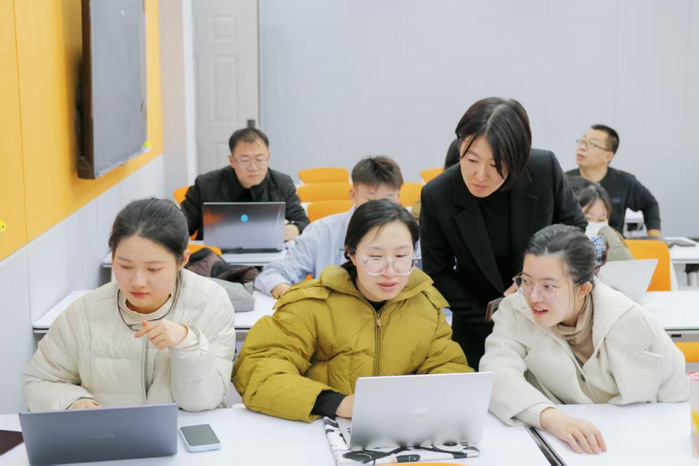王芳老師引領全體教師開啟沉浸式實操環節。她從雨課堂建課的步驟入手,解析AI輔助課程設計的核心功能,并組織參訓教師進行現場演練。教師們親身體驗了從課程搭建到內容生成的完整流程。兩位老師全程指導,實時解答操作中的具體問題,確保每位教師真正掌握相關技能。未來,管理學院將以AI教學應用創新為引領,系統推進課程內容與模式的升級,聚力打造管理類標桿課程。