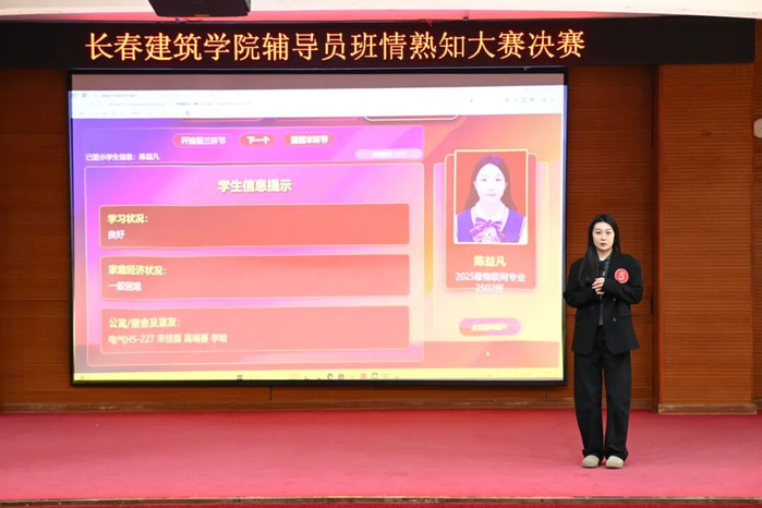 12月17日,長春建筑學院輔導員班情熟知大賽在土木工程學院報告廳成功舉行,標志著學校以“核心素養賦能 新質育人領航”為主題的2025年輔導員素質能力提升大練兵系列活動圓滿結束。