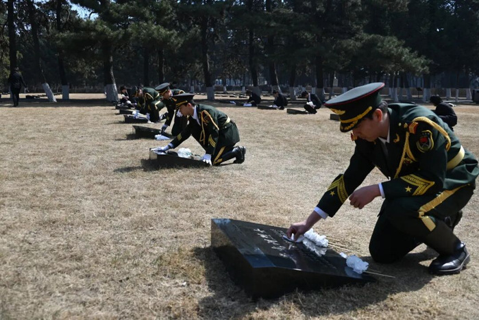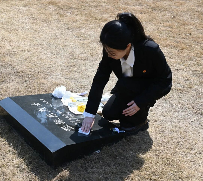 隨后,師生們懷著崇敬的心情前往烈士墓區(qū),俯身擦拭、仔細清理每一座墓碑上的塵土與雜物,以樸素而莊重的行動表達對先烈的深切追思,沉浸式接受紅色思政教育。