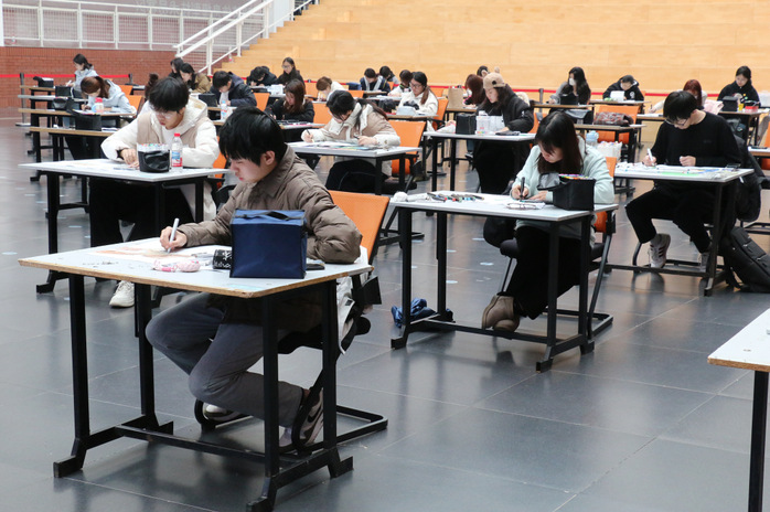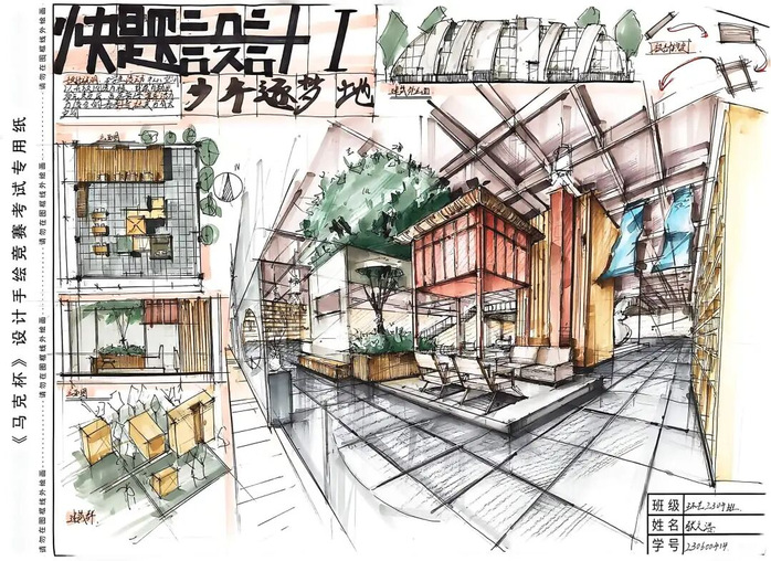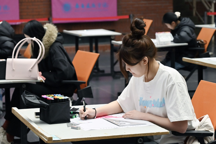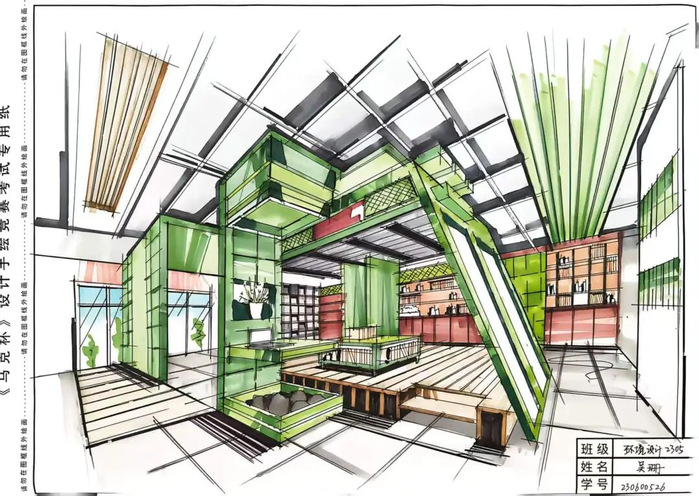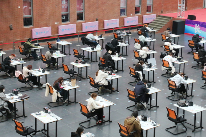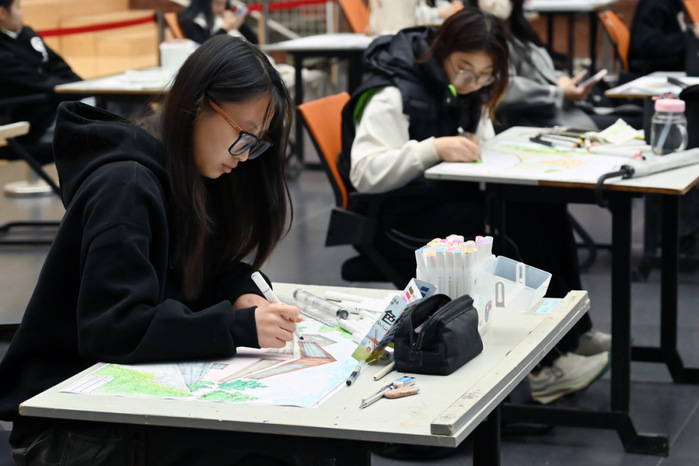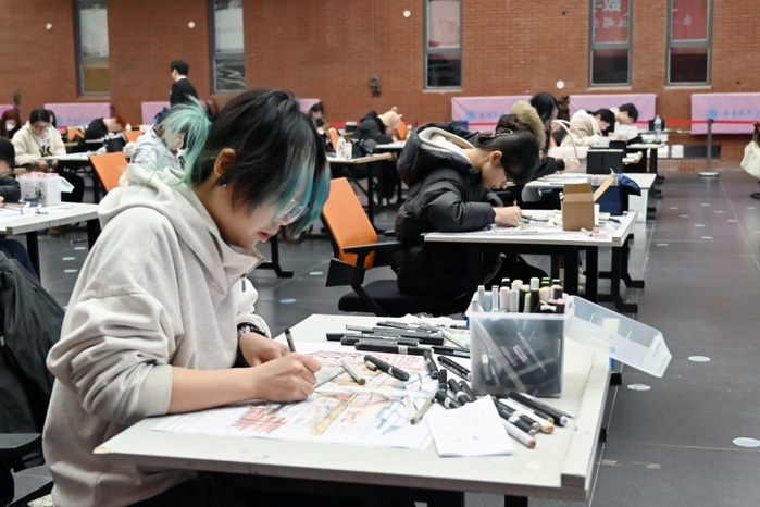 賽場內,參賽同學全神貫注、靈感涌動,筆尖在畫紙上流暢游走。從精準的起稿勾勒,到細膩的細節刻畫,再到層次豐富的色彩鋪陳,每一個步驟都盡顯扎實的專業功底與獨特的藝術巧思。大家圍繞賽事主題,結合專業所學與個人創意,將設計理念、審美風格融入作品,一幅幅兼具創意與實力的手繪作品在筆下逐漸成型。現場氛圍專注而熱烈,充分展現了公共藝術學院學子深耕專業、追求卓越的精神風貌,彰顯了學院專業教學的豐碩成果。